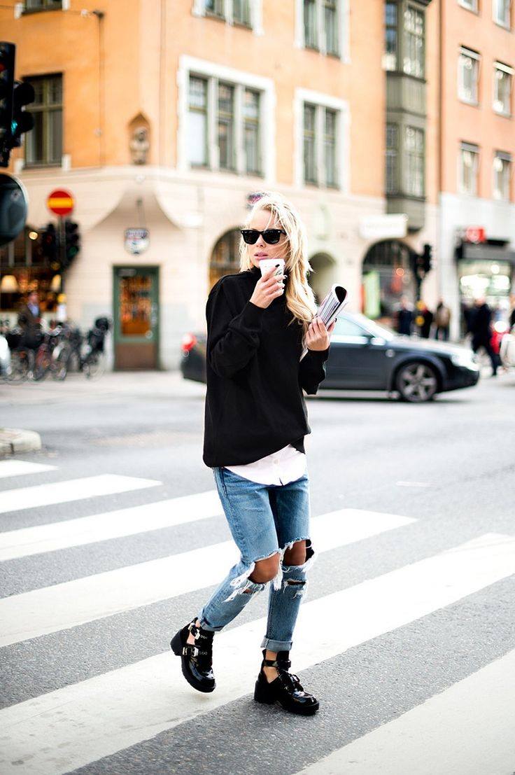Σίγουρα το να αγοράζεις νέα κομμάτια για την γκαρνταρόμπα σου σε ανανεώνει, αλλά τι καλύτερο από το να πετύχεις ένα stylish και casual look με κομμάτια που ήδη έχεις! Συνδύασε ένα τζιν με πολλά σκισίματα, ένα άσπρο μακρύ πουκάμισο μέσα από ένα μαύρο πουλόβερ και ένα ζευγάρι ankle boots με trooks ή αγκράφες. Πρόσθεσε και ένα ζευγάρι γυαλιά ηλίου τις ηλιόλουστες ημέρες!
