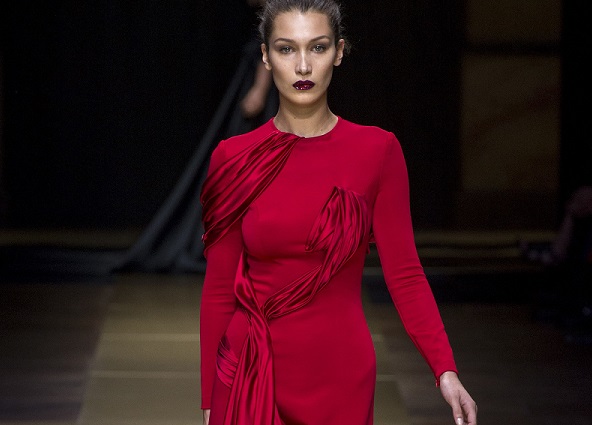 Οι φόρμες διατηρούσαν το στοιχείο draping από το μαύρο ταγιέρ με το ασύμμετρο ντεκολτέ μέχρι τη τουαλέτα που υπογράμμιζε τη γλυπτική του σώματος της Irina Shayk. Παρά το γεγονός ότι η σχεδιάστρια δεν έδωσε απόλυτη έμφαση στα κεντήματα φρόντισε να μη σπάσει τις παλιές συνήθειες κρατώντας τις παγιέτες και τα κοσμήματα όπου διακοσμούσαν παλτό και λαμπερές τουαλέτες σε σχήμα κλεψύδρας.