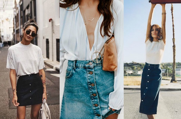 Έτσι, αυτή η vintage επιρροή δεν θα μπορούσε να λείπει και από τις δικές μας εμφανίσεις. Ένα από κομμάτια εκείνα που εμπνέονται από τα ’70ς -εκτός από τα παντελόνια καμπάνα- είναι και οι button skirts, δηλαδή εκείνες οι φούστες που έχουν στο μπροστινό μέρος τους μια σειρά από κουμπιά.