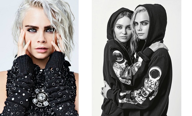 Το λαμπερό δίδυμο στην νέα Chanel καμπάνια, εμφανίζεται να φοράει επενδυμένα oversized hoodies με prints,αλλά και το σήμα κατατεθέν του οίκου, τουίντ σακάκια και μαργαριταρένια κολιέ.