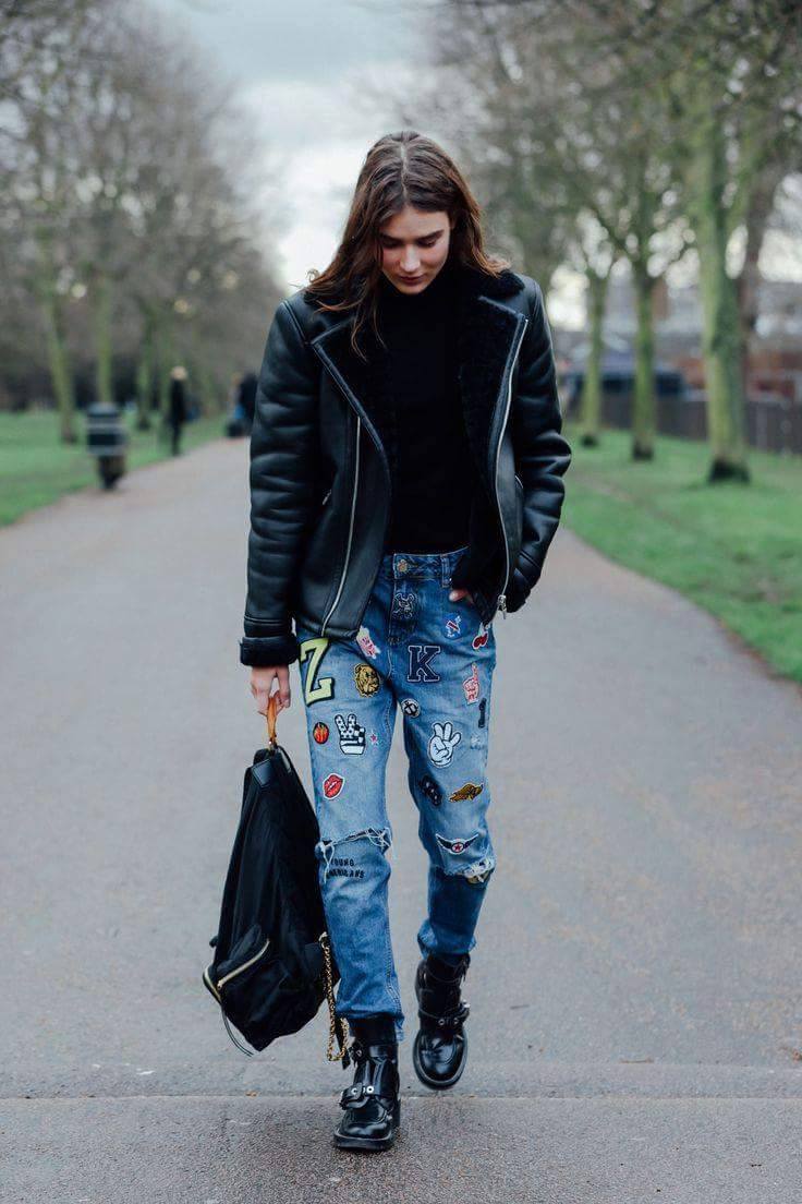 Ξέφυγε από τα συνηθισμένα τζιν, με ή χωρίς σκισίματα και αγόρασε ένα τζιν με κεντήματα ή σχέδια! Συνδύασε ένα τέτοιο τζιν με ένα μαύρο μακρύ πουλόβερ και ένα μαύρο jacket! Ολοκλήρωσε την εμφάνισή σου με ένα backpack και ένα ζευγάρι ankle boots!!