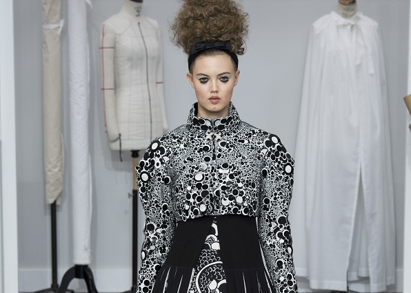 Η Chanel, μέσα από τη συλλογή Couture A/W 2016-17, τιμά τους αφανείς ήρωες που κρύβονται πίσω από τα high-fashion ateliers , τα “λεπτά χέρια” όπως τα αποκαλεί ο Karl Lagerfeld. Πριν την έναρξη της επίδειξης, είδαμε ρούχα που δοκίμαζαν στυλίστες στα μοντέλα, μοδίστρες που δούλευαν σιωπηλά μπροστά στη Singer ραπτομηχανή τους και σωρούς από μετάξι και ταφτά. Trapeze tweed jackets από τουίντ βρισκόντουσαν σε πλήρη αντίθεση με τις πιο γλυπτικές αμπαζούρ σιλουέτες . Διακρίναμε double-breasted κουστούμια, με αυστηρούς γιακάδες που κάλυπταν το λαιμό. Κάθε εμφάνιση τελείωνε με σουέντ μπότες, μέχρι το γόνατο διακοσμημένες με σούρες, όπου κάθε τους λεπτομέρεια αντικατοπτριζόταν στα λαμπερά μακριά elbow γάντια.