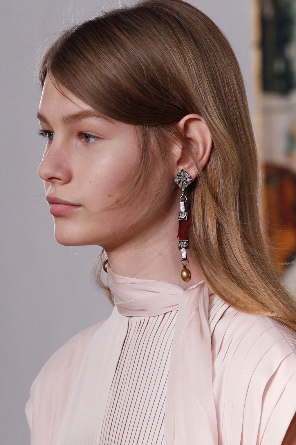 Makeup : O Tom Pecheux κοκκινίζει τα μάγουλα και τα χείλη σε πολύ γήινους τόνους και προσθέτει μεταλλικούς κόκκους στους κροτάφους των μοντέλων.
