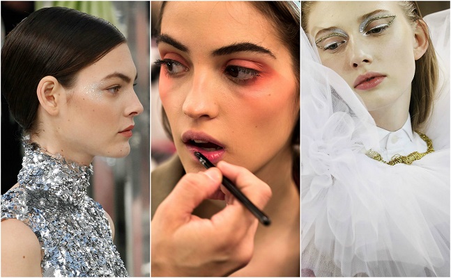 Αυτά που διακρίναμε πιο έντονα ήταν τα φρέσκα, ρομαντικά πρόσωπα με λεπτομέρειες glitter και αστραφτερών αστεριών, αλλά και τα μεταλλικά ανάγλυφα σχέδια που θύμιζαν αγγέλους που κατέβηκαν στην γη. Τα μαλλιά επίσης πολύ εντυπωσιακά με μία αίσθηση αγνότητας και θηλυκότητας μη εξεζητημένης. Φανερό πλέον ότι η μόδα για την φετινή Άνοιξη/Καλοκαίρι, προκαλεί το γυναικείο φύλο να αποκαλύψει την πιο ρομαντική και αγνή του πλευρά.