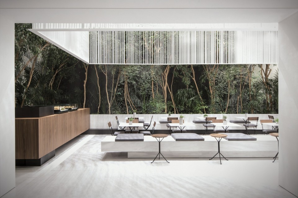 Πηγή έμπνευσης του αρχιτεκτονικού γραφείου Kois Associated Architects, το οποίο ανέλαβε το σχεδιασμό του Cycladic Café, αποτελεί η αφαιρετική αισθητική της συλλογής της Κυκλαδικής Τέχνης που στεγάζεται στο Μουσείο. Έτσι στο μικρό αυτό ευήλιο αίθριο, κυριαρχεί το φως και η λιτότητα. Ο Στέλιος Κόης σχεδιάζει ένα υποβλητικό στέγαστρο – γλυπτό, το οποίο καλύπτει την οροφή του αιθρίου, φιλτράρει το φως δημιουργώντας σκιάσεις στο χώρο. Ο μινιμαλιστικός φωτισμός επιμελήθηκε, έτσι ώστε να εναρμονίζεται με το άπλετο φυσικό φως και φέρει την υπογραφή της Ελευθερίας Ντεκώ, ενώ οι μαρμάρινοι πάγκοι με τα φυτά που αγκαλιάζουν τους τοίχους και φτάνουν ως την οροφή, έγιναν υπό τη μελέτη και επίβλεψη της doxiadis +( Αγγελική Μαθιουδάκη).