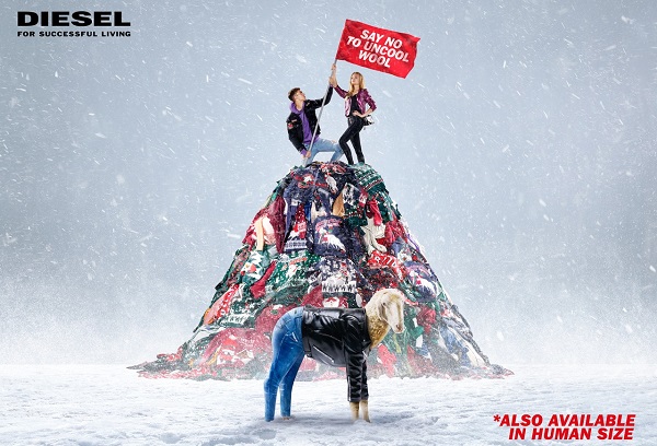 Ένα από τα αγαπημένα μας fashion brands, μας προτρέπει φέτος το χειμώνα, να πούμε «όχι» στα ξεπερασμένα μάλλινα και να αφήσουμε στην άκρη τα άχαρα χριστουγεννιάτικα πουλόβερ μας. Και κάπως έτσι η Diesel αγωνίζεται ενάντια στο uncool wool, με τη βοήθεια ενός πολύ cool πρόβατου…