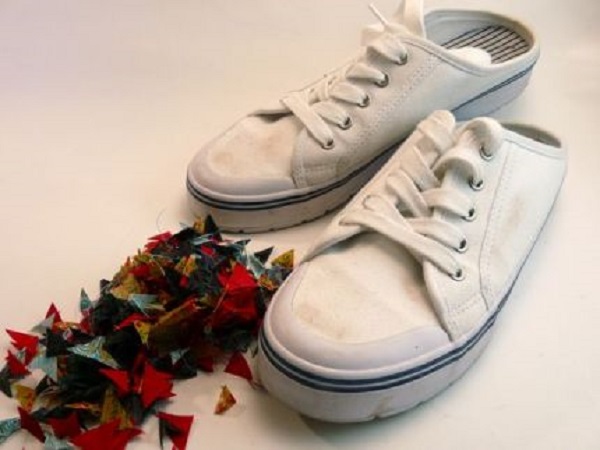 Προτού ξεκινήσετε, αφαιρέστε τα κορδόνια, καθαρίστε και στεγνώστε τα καλά έτσι ώστε να είναι όσο πιο καθαρά γίνεται. Καλύψτε με ταινία τα σημεία τριγύρω από το τμήμα που θέλετε να “πειράξετε”, για να μη στάξει η κόλλα.