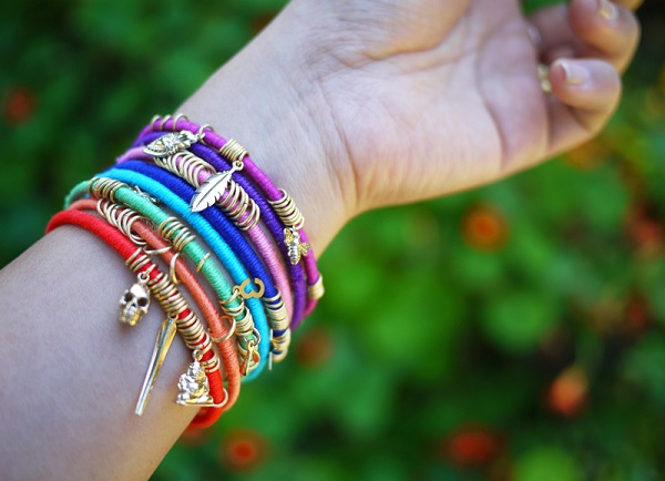 Ορειχάλκινα λεπτά βραχιόλια, χρωματιστές κλωστές κεντήματος και charms σε ποικιλία, έρχονται να σας δώσουν μια έξυπνη, εύκολη και ταυτόχρονα πρωτότυπη stylish ιδέα, με υλικά που πιθανόν ήδη να έχετε σπίτι.