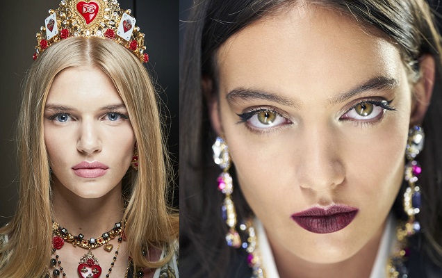 Ο οίκος Dolce & Gabbana, στο πλαίσιο του Ready-to-Wear fashion show στο Μιλάνο, παρουσίασε μια νέα συλλογή, εμπνευσμένη από την Queen of Hearts. Το όραμα των σχεδιαστών ολοκληρώθηκε από το μακιγιάζ που τόνιζε την λαμπερή επιδερμίδα τους και συνδυάστηκε με εμβληματικά «γατίσια» μάτια και έντονα χείλη. Τα νύχια συμπλήρωναν την εμφάνιση με φίνα ουδέτερα χρώματα.
