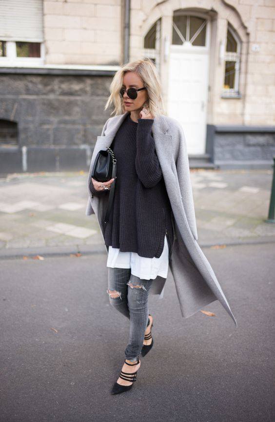 Μη διστάζεις να συνδυάσεις βασικά κομμάτια ίδιου χρώματος! Προσθέτοντας και κάποια άλλα κομμάτια ή αξεσουάρ σε ουδέτερες αποχρώσεις θα πετύχεις ένα stylish look! Συνδύασε το γκρι σου τζιν, με ένα γκρι παλτό και ένα μακρύ γκρι πουλόβερ! Πρόσθεσε μία λευκή τουνίκ από μέσα, ένα μαύρο τσαντάκι και ένα ζευγάρι μαύρες γόβες!