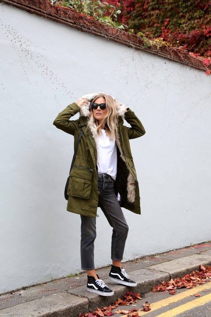 Αναρωτιέσαι καθημερινά τι ρούχα να βάλεις κυρίως τις μέρες που έχει αρκετό κρύο! Βγες από τη δύσκολη θέση, συνδυάζοντας ένα παρκά με γούνα σε χακί τόνους, ένα ψηλόμεσο τζιν σε γκρι αποχρώσεις και ένα άσπρο shirt! Δώσε στιλ με μία μαύρη τσάντα ώμου και ένα ζευγάρι αθλητικά μποτάκια!