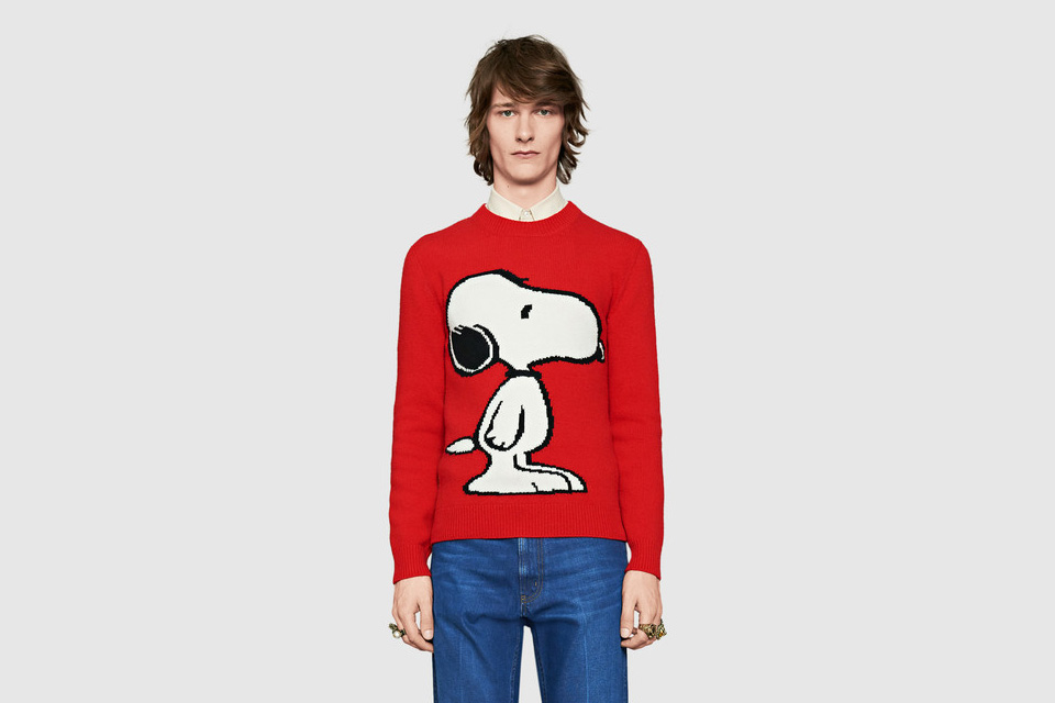 O πολυαγαπημένος χαρακτήρας των comic books Peanuts, εμφανίζεται σε ένα πλεκτό πουλόβερ, σε κοντομάνικη μπλούζα και σε φούτερ του γνωστού Ιταλικού οίκου με σχέδια τόσο μπροστά, όσο και στη πλάτη τα οποία μας παραπέμπουν στη γνωστή γαλλική παροιμία “τυφλός από έρωτα”. Ο εκκεντρικός σχεδιαστής Αlessandro Michele μας υπενθυμίζει πόσο όμορφο είναι όταν προσθέτεις κάτι πρωτότυπο και βγαλμένο από το παρελθόν σε μια νέα συλλογή ρούχων!