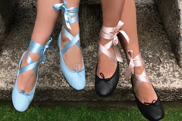 Τα παπούτσια υπάρχουν σε δύο χρώματα, ένα ρομαντικό pastel μπλε με ασορτί κορδέλες και ένα κλασικό μαύρο με baby pink κορδέλες και είναι διαθέσιμα προς πώληση στο e-shop του blog της Chiara, το Blonde Salad έναντι 250 €!