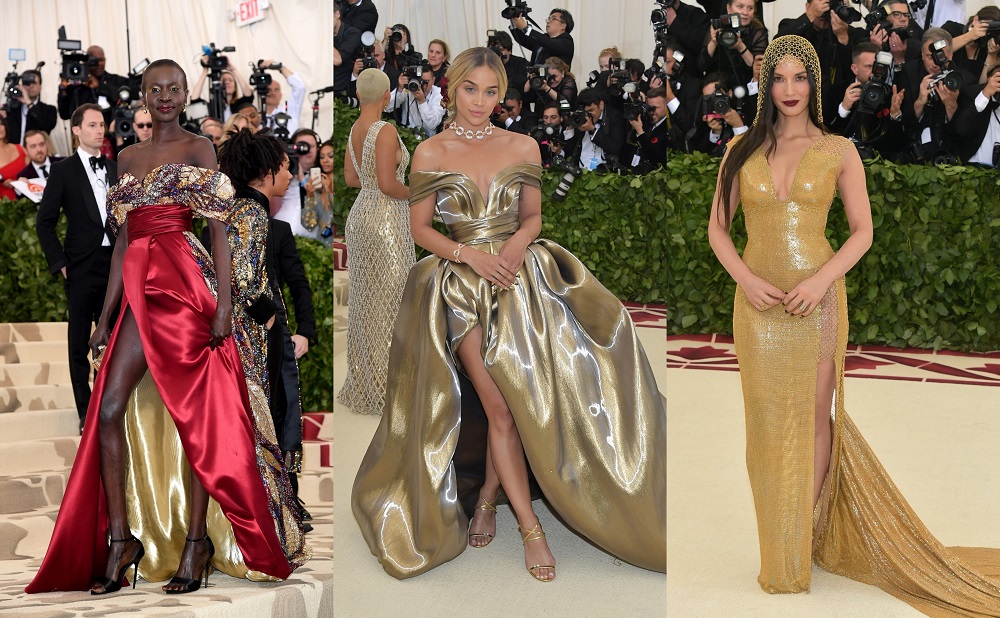 «Μου αρέσει πολύ που το φόρεμα φέρει το θέμα της έκθεσης με μια σύγχρονη και μοντέρνα ματιά. Είναι τόσο διασκεδαστικό να το φοράει κανείς», λέει η Olivia Munn. Η ηθοποιός και μοντέλο, φορούσε ένα τολμηρό αμάνικο φόρεμα αλληλένδετων κρίκων με ντραπάρισμα πάνω στο σώμα που έμοιαζε με υγρό. Χρυσοί κρίκοι σχημάτιζαν μακριές και λεπτές σειρές στο φόρεμα με το βαθύ ντεκολτέ και τα ανοίγματα στο πλάι, ενώ κρίκοι