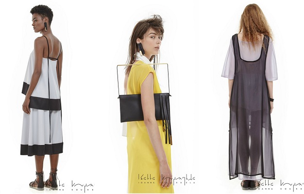 Γραμμικά μοτίβα, συμμετρικές ασυμμετρίες, χρωματική καθαρότητα αλλά και Color blocking. Σύνθεση αντιφατικών υφών. Διαφάνεια και αδιαφάνεια που δένουν αρμονικά. Η αιθέρια ελευθερία και συγκράτηση. Άνυδρες δομές και ρευστά γίνονται στοιχειά που εκπλήσσουν.