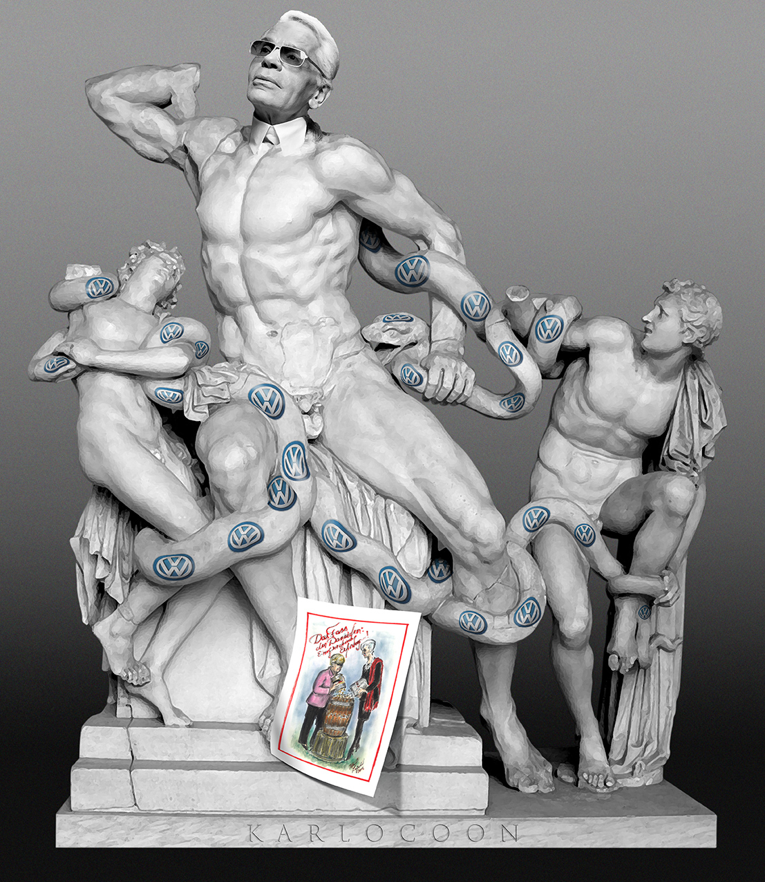 Ο γνωστός στυλίστας Δημήτρης Γραμματικογιάννης επηρεασμένος από το σχόλιο του Karl Lagerfeld μεταμορφώνει τον σχεδιαστή στο πασίγνωστο άγαλμα ” Ο Λαοκόων και οι γιοί του” και παρουσιάζει το έργο του στο ethicalode.com, στο οποίο είναι fashion editor!