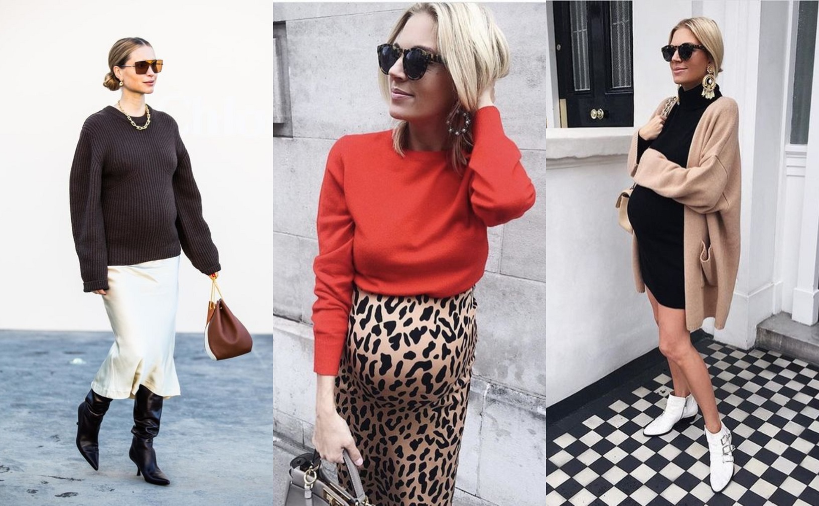 Όταν έχει αρχίσει να φουσκώνει η κοιλίτσα σου και δεν νοιώθεις αρκετά ανετα σε πιο εφαρμοστά ρούχα μπορείς να ισσοροπήσεις ανάμεσα σε φαρδιές γραμμές όπως να φορέσεις ένα μιντι φόρεμα και απο πάνω ενα φαρδύ jacket. Προτίμησε κάτι σε midi για να φανεί το δέρμα σου και να μην φαίνεται ότι κρύβεσε πίσω απο τα ρούχα σου. Συμπλήρωσε στο look σου και ένα ζευγάρι γυαλιά και ένα ωραίο ζευγάρι μποτάκια.