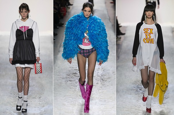 Ή έστω μην τους ψηφίζετε. Υπήρχε πραγματικά κάτι το επαναστατικό στον τρόπο με τον οποίο ο Jeremy Scott αντέστρεψε τους φόβους του για να τη νέα κυβέρνηση, απαντώντας στην πιθανότητα για καταστολή των ελευθεριών απαιτώντας χρόνο και χώρο για διασκέδαση. Μάλιστα όσο περισσότερη διασκέδαση τόσο το καλύτερο. Το ολοστόλιστο αστέρι από δέρμα, η φράντζα a la showgirl, οι πολύ μικρές σε μέγεθος χαπιού polka dots, το ροζ βελούδο και το τσαλακωμένο σιφον πάνω σε peignoin trim φάνηκαν επιθετικά περισσότερο κι από τα ανοράκ που ήταν εμπνευσμένα από το στρατό ή το χίπικο δέρμα patchwork και τα φθαρμένα jeans. Έτσι μοιάζει να είναι η ελευθερία στα μάτια του Jeremy Scott.