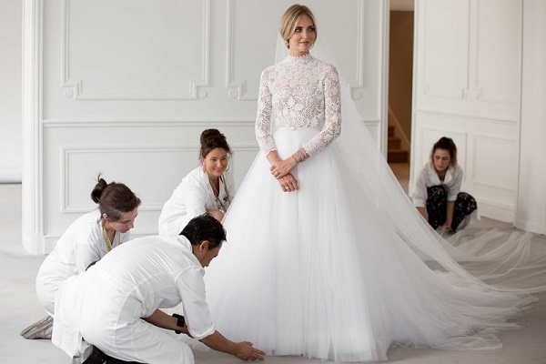 Σύμφωνα με τον Dior, το φόρεμα που δημιουργήθηκε για τον γάμο της Ferragni , «συνδυάζει την έμπνευση από την ιταλική τέχνη με τη γαλλική υψηλή ραπτική σε ένα αποτέλεσμα που είναι αναμφίβολα σύγχρονο και διαχρονικό».