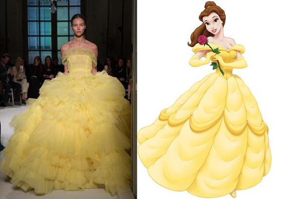 Το κεντητό φόρεμα του οίκου Ulyana Sergeenko για παράδειγμα θα ταίριαζε τέλεια στην Ariel τη μικρή γοργόνα, ενώ το καναρίνι κίτρινο του Giambattista Valli θα ήταν σίγουρα το φόρεμα της Belle από την Πεντάμορφη και το Τέρας. Τα balloon μανίκια του φορέματος του σχεδιαστή Guo Pei θυμίζουν το φόρεμα της Ραπουνζέλ, ενώ το φόρεμα των Viktor & Rolf θα ήταν τέλειο για μια σύγχρονη Χιονάτη.