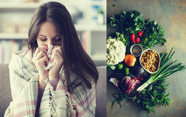 Βάλτε στο καθημερινό διαιτολόγιο σας τουλάχιστον 5 μερίδες φρούτων και λαχανικών. Τα φυλλώδη λαχανικά, οι πιπεριές και τα εσπεριδοειδή όπως πορτοκάλια και γκρέιπφρουτ, είναι πλούσια σε βιταμίνη C. Αυτή η βιταμίνη αδρανοποιεί την ισταμίνη, την ουσία που είναι υπεύθυνη για την καταρροή και τη συμφόρηση και βοηθά στη μείωση της φλεγμονής που συνοδεύει τα κρυολογήματα και τους ιούς.
