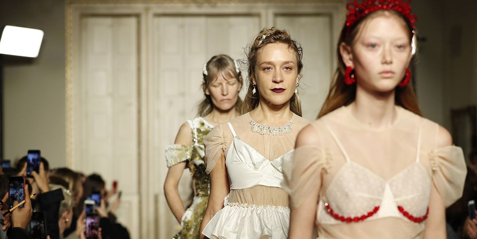 Η Conie Vallese καλλιτέχνης από την Αργεντινή με έδρα τη Νέα Υόρκη, η Lily Cole Αγγλίδα μοντέλο που έγινε σκηνοθέτης και η Chloe Sevigny, ηθοποιός, σκηνοθέτης και μύθος του στυλ ανέβηκαν στην πασαρέλα στην επίδειξη μόδας για τη συλλογή Φθινόπωρο/Χειμώνας 2019 της Simone Rocha στο πλαίσιο της Εβδομάδας Μόδας του Λονδίνου.