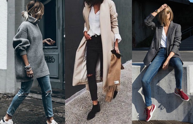 Συνδύασε το skinny jean σου με ένα t-shirt ή ένα φούτερ με ένα λογότυπο, είτε αυτό είναι του αγαπημένου σου συγκροτήματος, είτε του αγαπημένου σου fashion brand, είτε απλά έχει τυπωμένο πάνω του το quote που εκφράζει τη διάθεση και το στυλ σου… Ολοκλήρωσε το συγκεκριμένο look επιλέγοντας sneakers ή ψηλοτάκουνα.