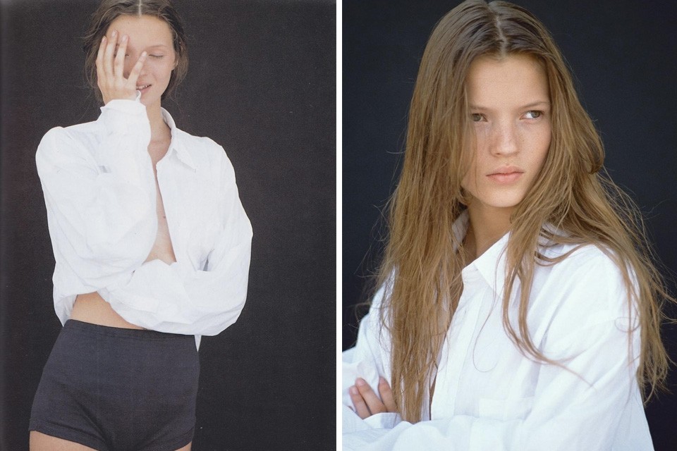 Έτσι στο φως της δημοσιότητας ήρθε το συγκεκριμένο σπάνιο φωτογραφικό υλικό, στο οποίο η νεαρή τότε Kate ποζάρει και μαγεύει το φακό στο ξεκίνημα της καριέρας της. Ο Scarbiena που ανέλαβε το concept της συγκεκριμένης φωτογράφησης απαθανατίζει τη δροσερή Kate να στέκεται φορώντας ένα oversized λευκό πουκάμισο κι ένα ζευγάρι γκρι sneakers.