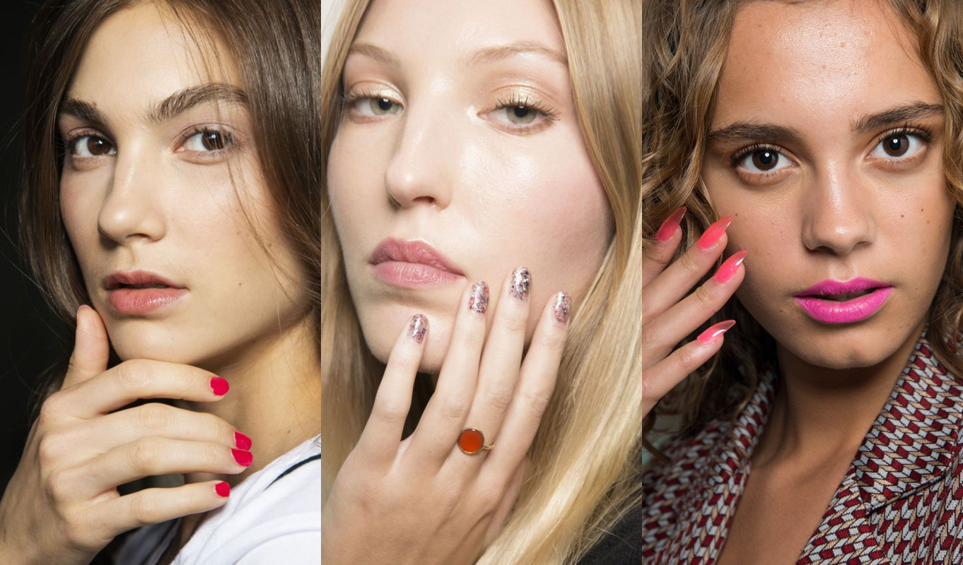 Φωτεινές αποχρώσεις του ροζ και του κόκκινου, neon και glitter «πινελιές» αλλά και σκούρες «ζουμερές» αποχρώσεις, είναι μερικά από τα naild trends που είδαμε στις πασαρέλες της σεζόν S/S 2019.