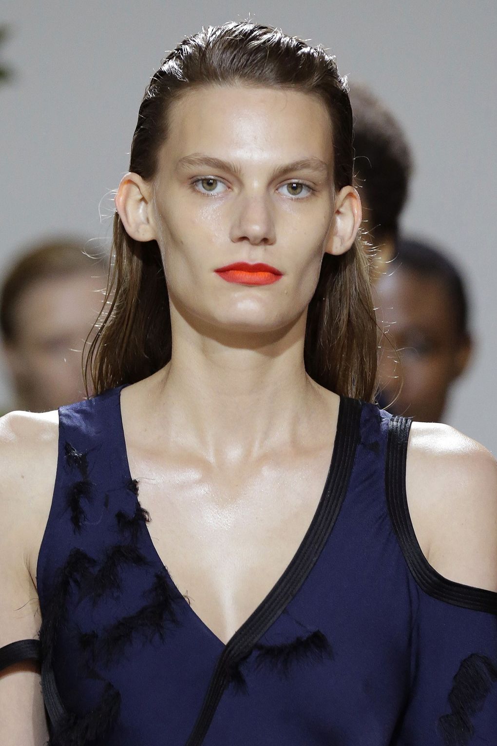Εδώ τα μαλλιά χρησιμοποιούνται σαν όπλο και σύμβολο αυτοπεποίθησης και ισχύος. Είδαμε μαλλιά “γλυπτά”, χαμηλές αλογοουρές δεμένες χρησιμοποιώντας ζώνες ως αξεσουάρ για τα μαλλιά, κάποιοι το κράτησαν τόσο απλό όσο ένα slicked-back look με τα μαλλιά πίσω από το αυτί για ένα ultra chic αποτέλεσμα.