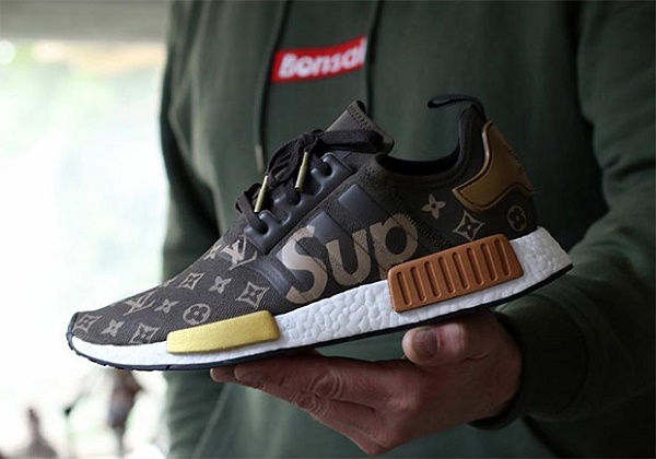 Δημιουργημένο για την τελειότητα και χάρη στις καλλιτεχνικές δεξιότητες του customize sneaker team, το adidas NMD R1 ντύνεται από την κορφή ως τα νύχια με το εικονικό μονόγραμμα του οίκου LV, και το λογότυπο της Supreme να αναγράφεται ως “Sup” στις πλάγιες πλευρές. Η δερμάτινη λεπτομέρεια στη περιοχή της φτέρνας καθώς και τα EVA στοιχεία που περιβάλλουν την ενδιάμεση Boost σόλα, φέρουν τις κλασσικές και χαρακτηριστικές αποχρώσεις του οίκου Louis Vuitton, εκτοξεύοντας την αισθητική του sneaker.