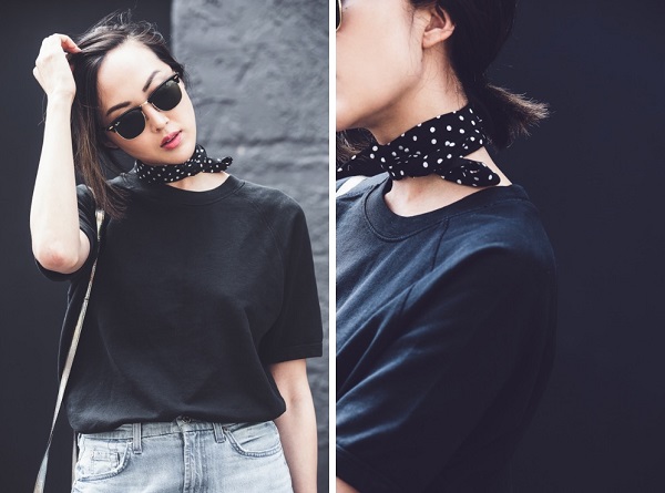 Συγκεκριμένα, το μαντήλι που δένει γύρω από το λαιμό είτε πρόκειται για μεταξωτό, είτε για μια απλή μπαντάνα επανέρχεται ως απαραίτητο γυναικείο αξεσουάρ, στην πιο chic αλλά και στην πιο grunge εκδοχή του, θυμίζοντας άλλοτε εποχές ’60s κι άλλοτε την εποχή της δεκαετίας του ’90. Άλλοτε ως εναλλακτικό chocker κι άλλοτε αντικαθιστώντας κάποιο κολιέ, σε κάθε περίπτωση, πρόκειται για ένα διαχρονικό αξεσουάρ που δεν πρέπει να λείπει από την γκαρνταρόμπα σας.