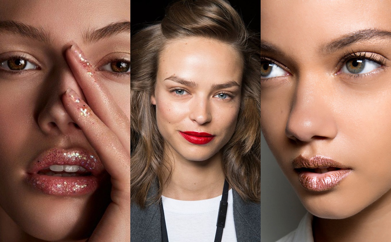 Τέλος, σούπερ trend είναι τα glitter και οι έντονες λάμψεις στα χείλη. Έτσι τα χείλη σας θα μαγνητίσουν όλα τα βλέμματα! Το υπόλοιπο μακιγιάζ είναι καλό να είναι στο ύφος να υπάρχουν μεταλλικές σκιές , ή το ρουζ να έχει και αυτό κάποια λάμψη. Αυτή την επιλογή είναι καλό να την κάνετε για την έξοδο σας βράδυ.