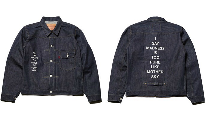 Αυτή η limited edition σειρά αποτελείται από 3 vintage αγαπημένα μοντέλα σε dark wash αποχρώσεις και παραλλαγές που εμφανίζονται ως TYPE I, II, III. Οι λάτρεις των trucker jackets μπορούν να προσαρμόσουν τα εικονικά σχέδια με την καθοδήγηση των ειδικών της Levi’s που θα συναντήσουν στο online κατάστημα THE PARK-ING GINZA, όπως για παράδειγμα στο TYPE 1 jacket που εμφανίζεται παραπάνω και φέρει στίχους του “Mother Sky”, της γερμανικής μπάντας Can.