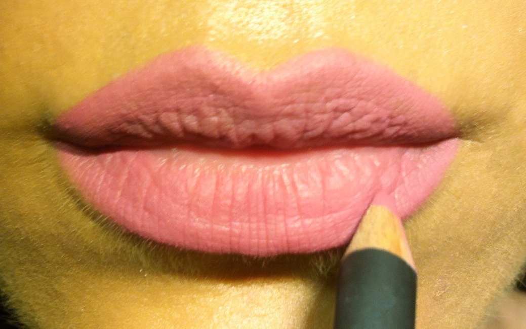 9.Τα χείλη τα έχτισα με ένα ροζ-καφέ liner και τα γέμισα με ένα απαλό satin ροζ χρώμα.
